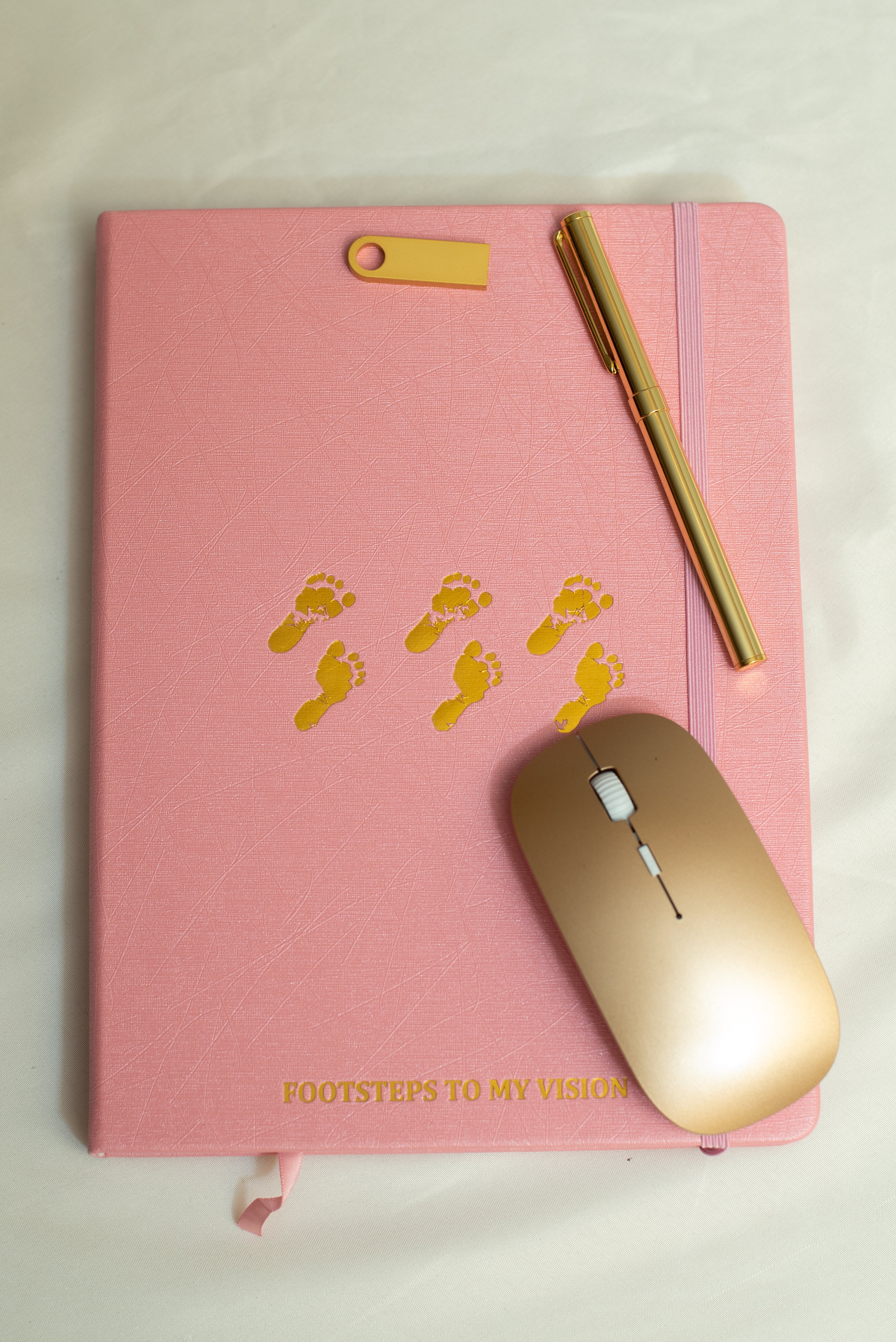 The Footsteps to My Vision journal planner set is definitely a must for every modern man or woman who understands the importance of staying organized in order to achieve their objectives. Made with high-quality PU leather and paper, with a gorgeous vintage design that looks stunning on your desk or in your briefcase, this leather planner helps you focus on achieving your goals, promoting self-accountability and self-checks, giving you a sense of personal and professional satisfaction!